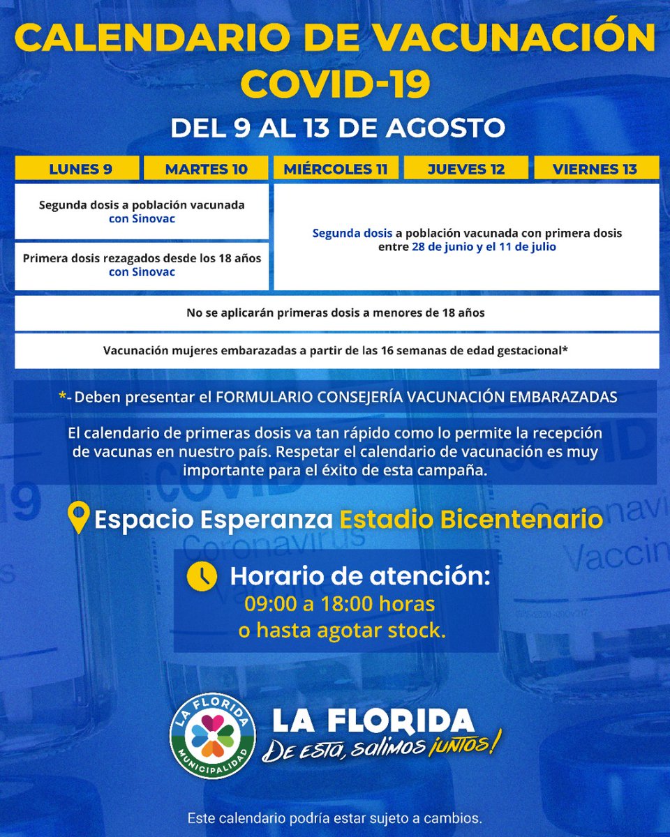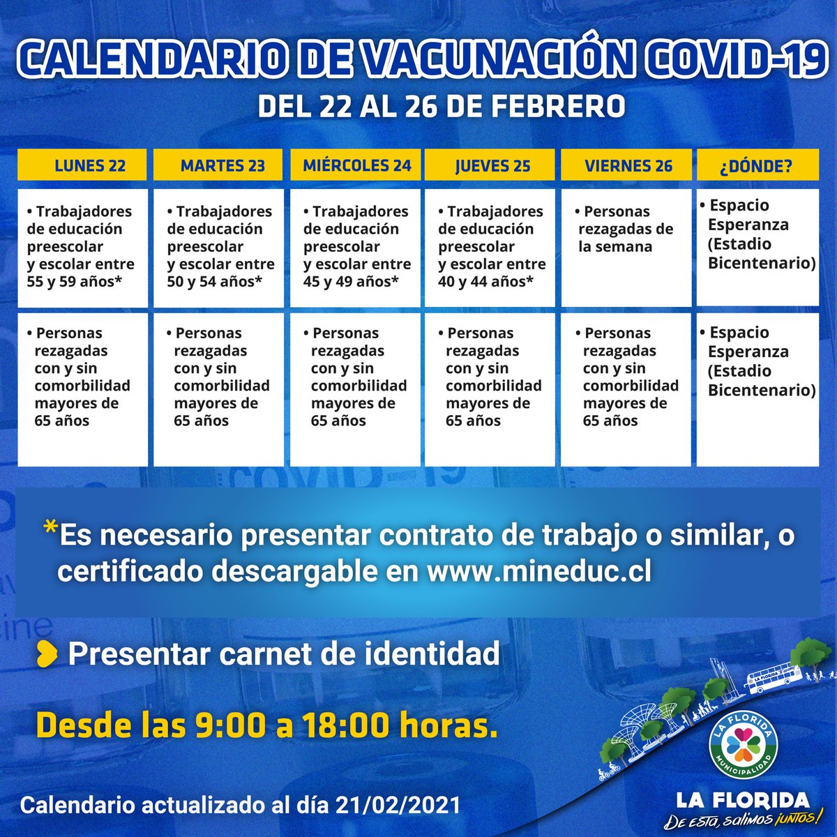 Calendario De Vacunacion Covid 19 En La Florida Municipalidad De La Florida